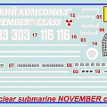 The first Soviet nuclear submarine "K-3" (project 627) (awarded the name "Leninsky Komsomol" after 09.10.1962) was commissioned in 1958. The submarine was created in response to the emergence of the American nuclear submarine "Nautilus" and appeared to be very successful. It also served as a basis for 12 improved submarines constructed per project 627A (NATO code name ? November class). Submarines "K-3" were the first output of the whole Soviet naval base that participated in fulfillment of numerous important and unique missions for the Soviet Union. Among those missions there were several individual and group cruises under the ice of the Arctic, a group cruises that ran over 20000 miles under the water of the Atlantic and the Pacific oceans. In 1968 "K-181" was the only submarine in USSR awarded with the ?Order of the Red Banner? in post-war period. Nuclear submarines (project 627/627?) occupy rightfully a worthy place in the history of the Soviet Navy.