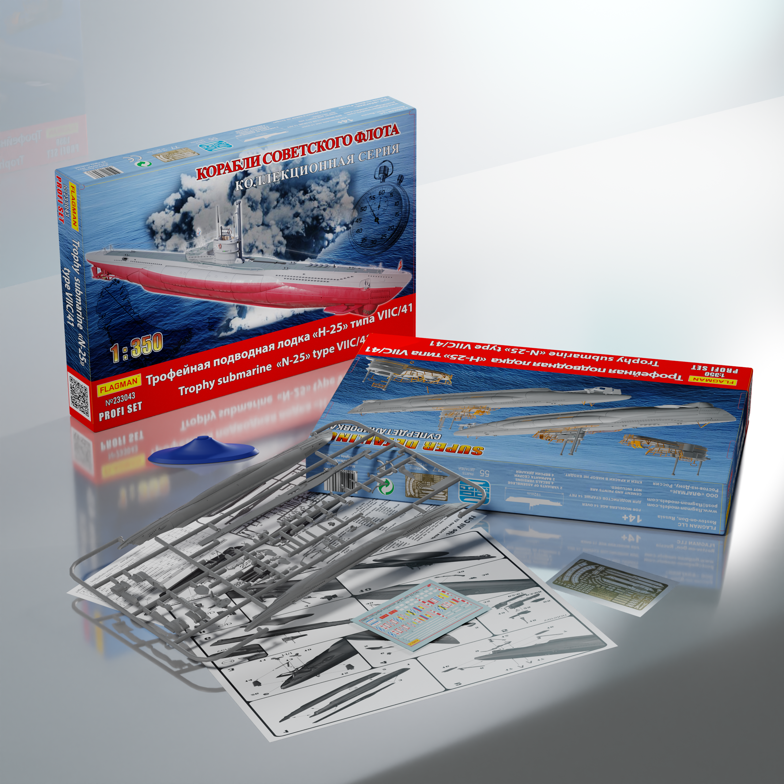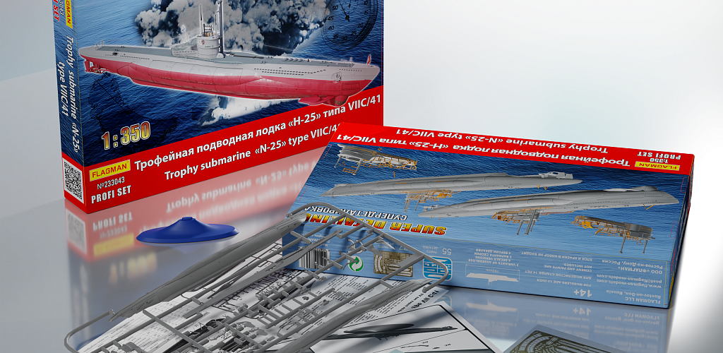 Коллекционную серию «Корабли Советского Флота» начинает (открывает) модель №233043 «Трофейная подводная лодка «Н-25» типа VII C/41». В ней, отливку разработки ещё 2007 года, дополняет новая плата ФТД (МикроДизайн) и богатая деколь (Бегемот), в которой простоту бортовых номеров советских лодок разнообразят парадные флаги расцвечивания, складывающиеся в интересные слоганы.